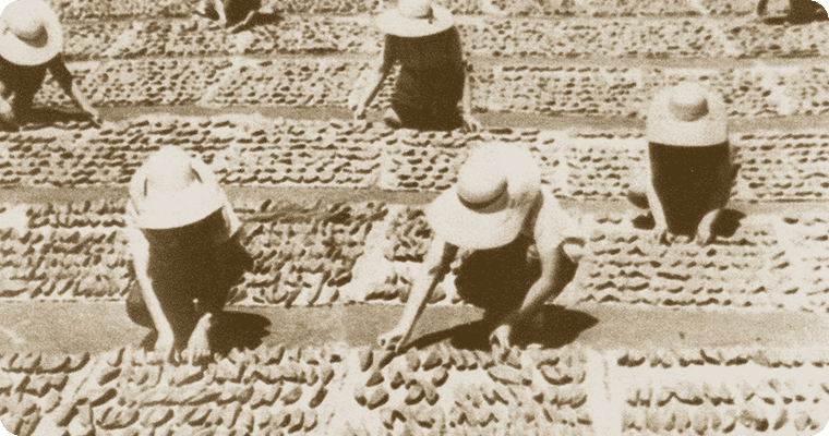 株式会社柳屋本店に社名変更・系列会社柳屋水産工業株式会社を設立し、花かつお、養鰻、しらす加工の業務を同社の経営事業とする。(写真:暑い日盛りに鰹節の日乾手入れ柳屋本店工場乾し場で【昭和43年ごろ】)